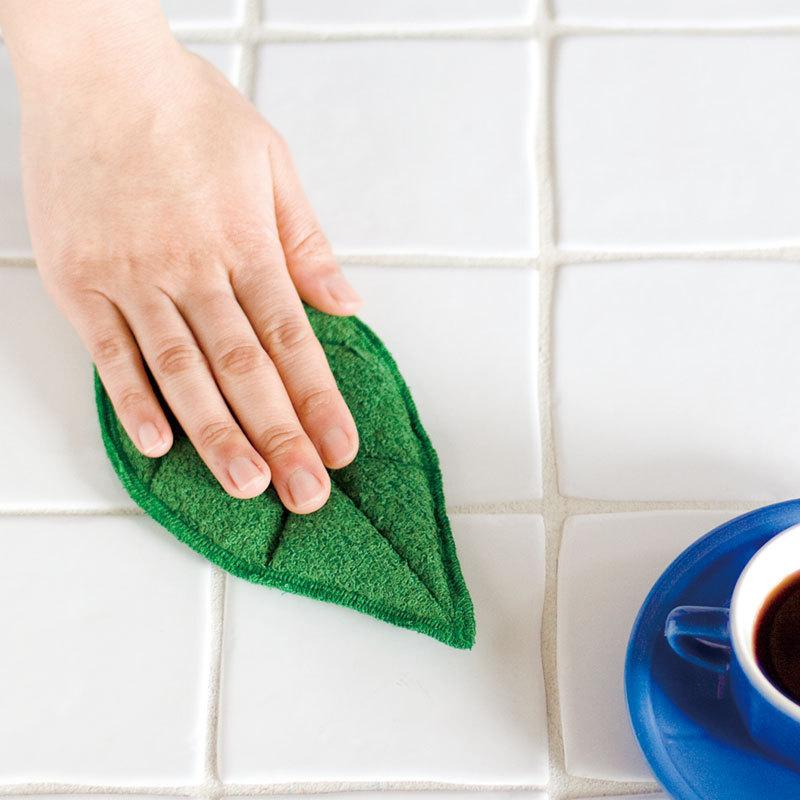葉っぱの、布巾なんです。