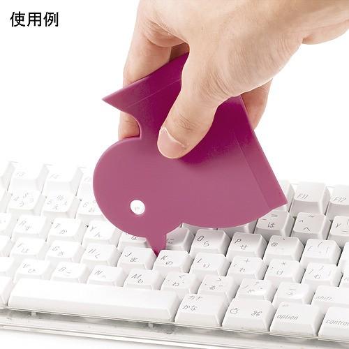 底(…というか腹?足?)の広いまっすぐな面でスクイーザーのようにほこりを集め、くちばしの部分でキーボードなどの細かい部分のほこりをかきだすことができます。