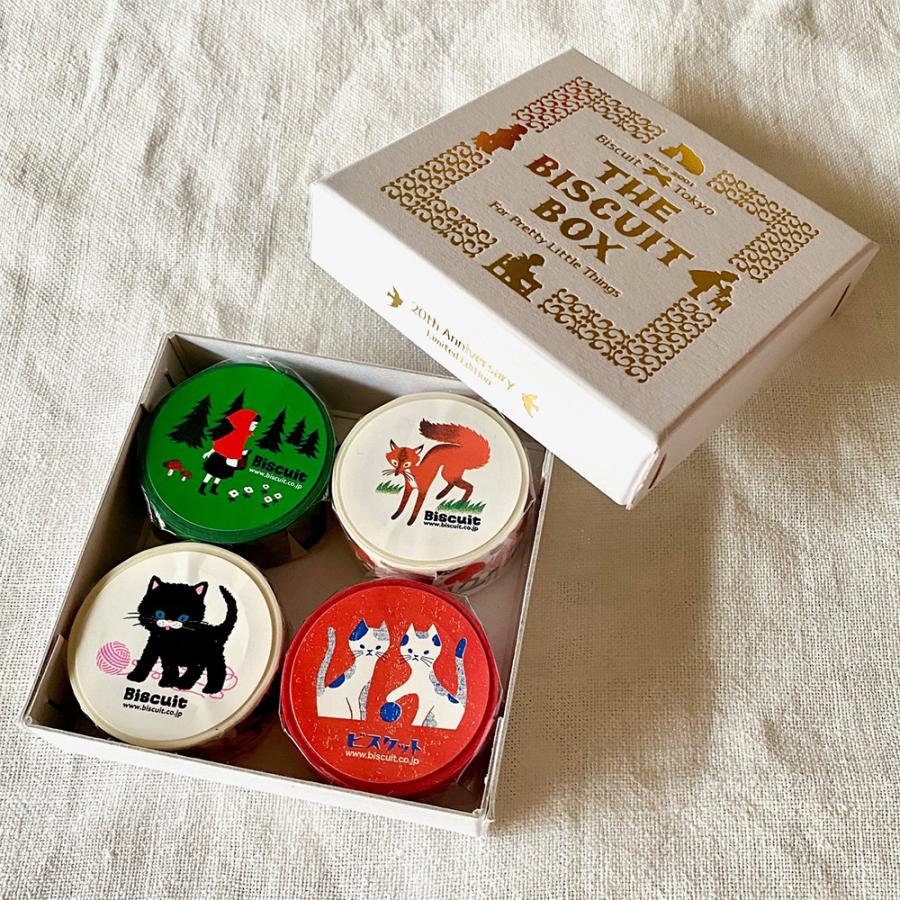 箔押し小箱入りの20周年記念のマスキングテープ4巻セットです。