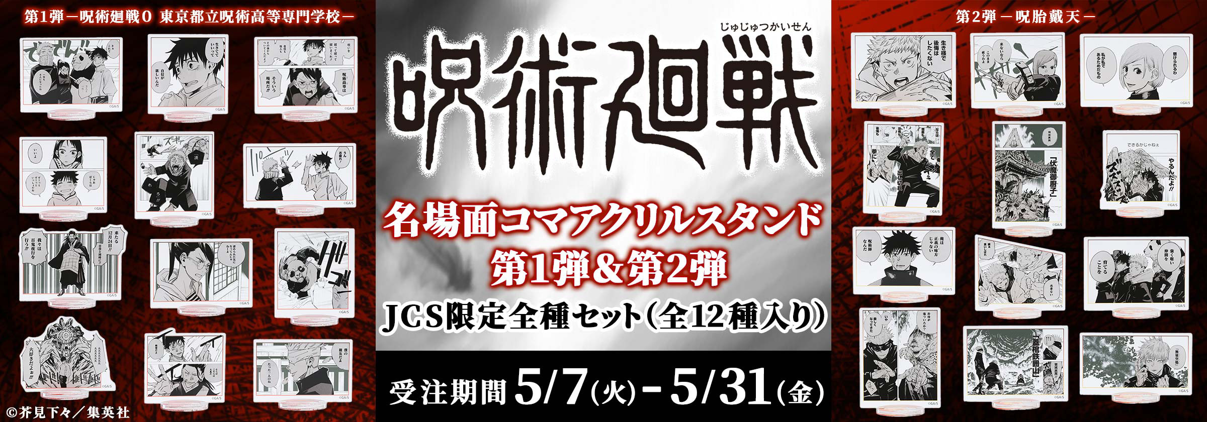 『呪術廻戦』の名場面アクリルスタンドが、ジャンプキャラクターズストアで受注受付中です。